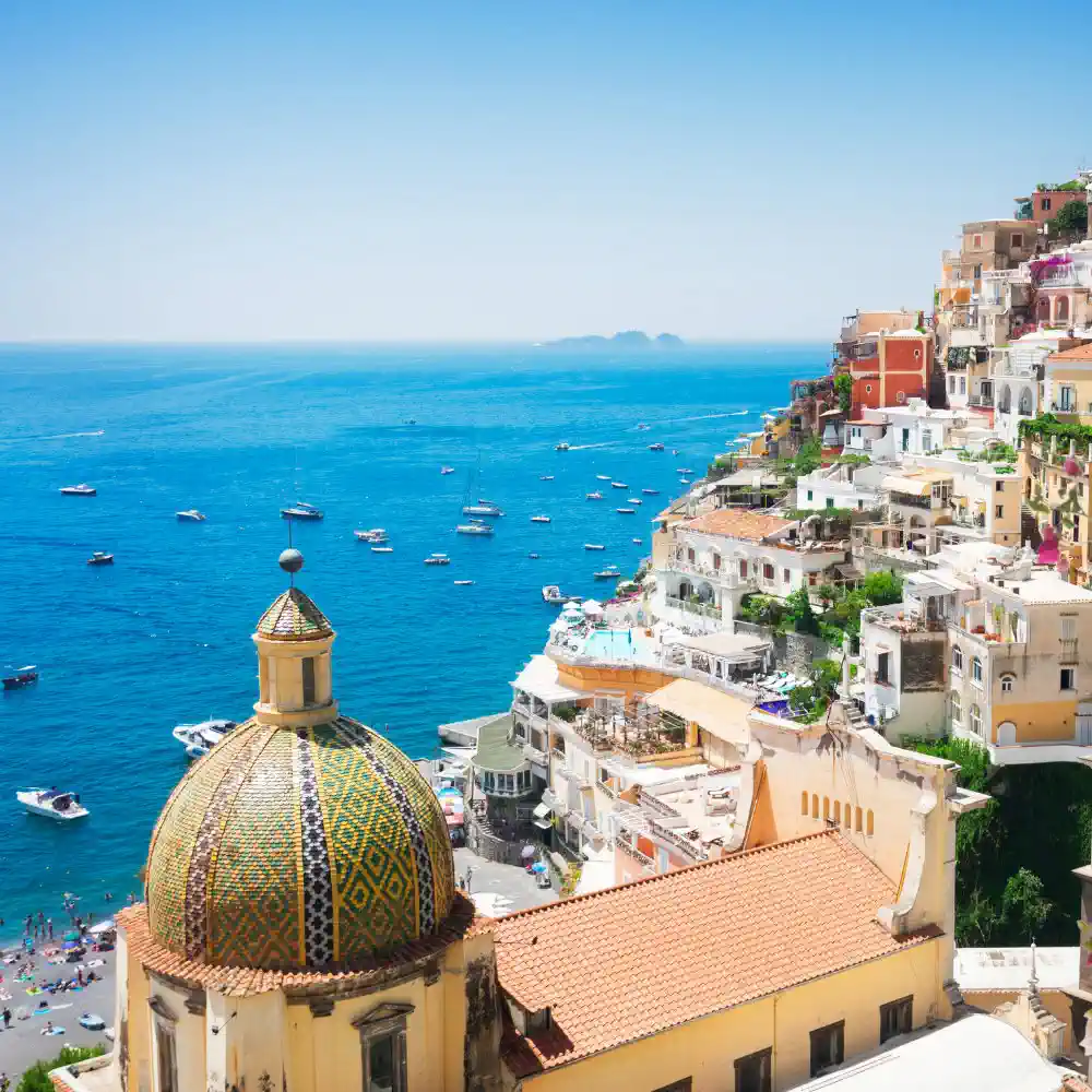 La Iglesia de Santa María Assunta: El corazón espiritual de Positano, famosa por su majestuoso domo mayólico. Su historia y arte te dejarán sin aliento. Asegúrate de visitarla durante la mañana para evitar multitudes.